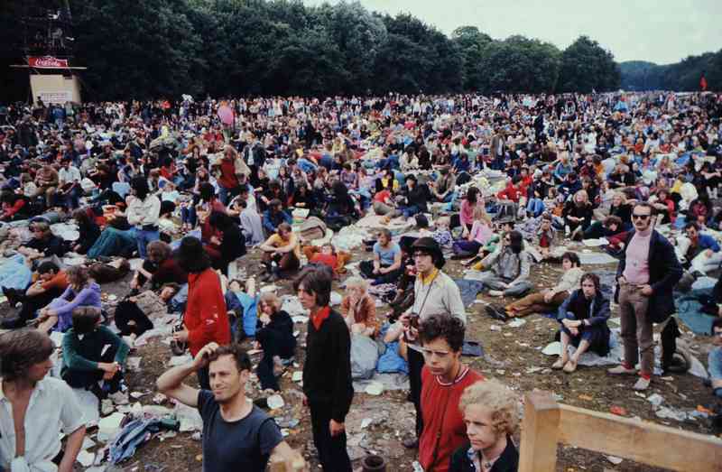 - Kleurenfoto van het publiek tijdens het Holland Pop festival