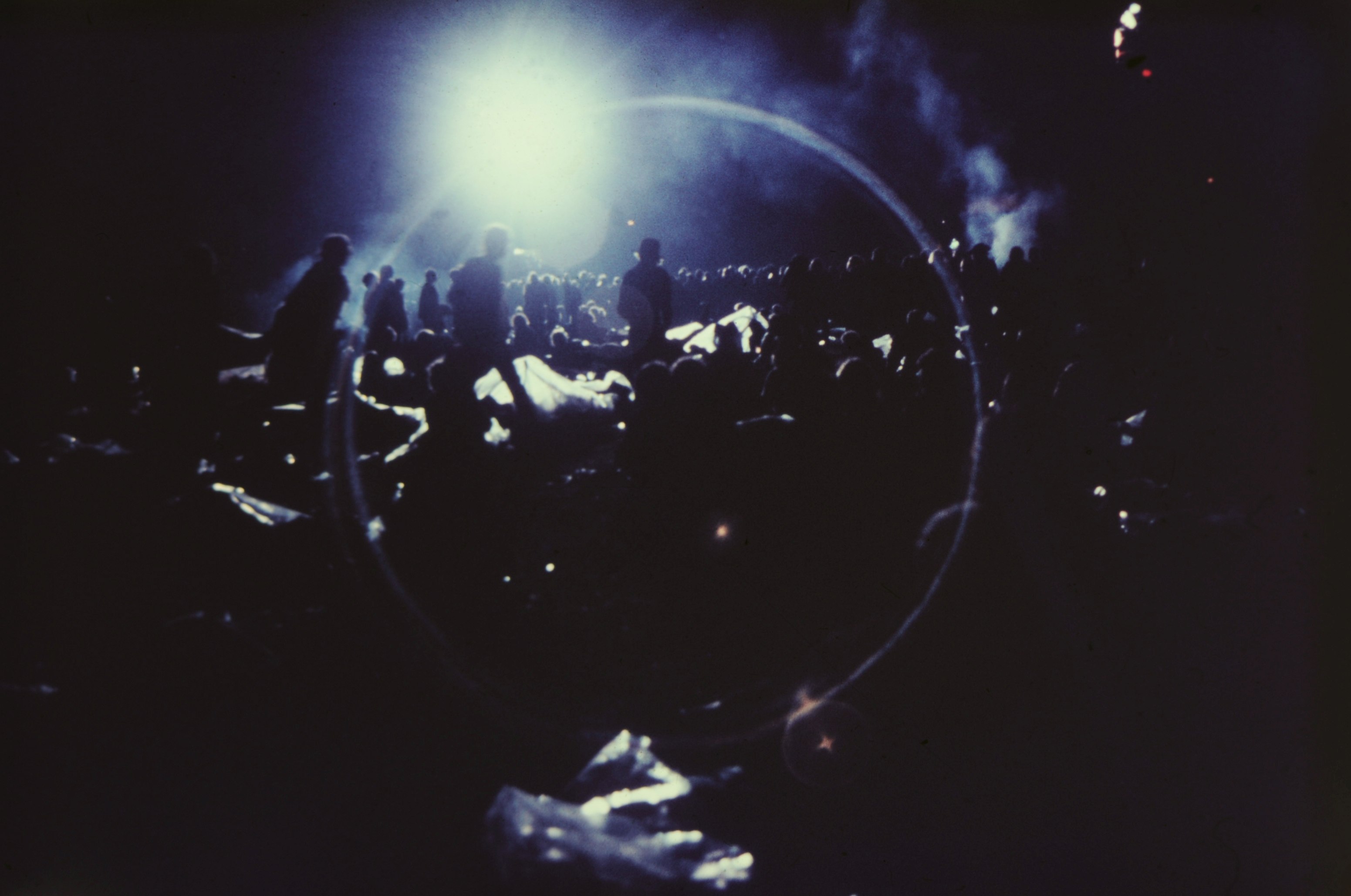 - Holland popfestival, Festival Rotterdam, Kralingse bos, bezoekers, publiek, 'snachts, podiumlamp, spotlight