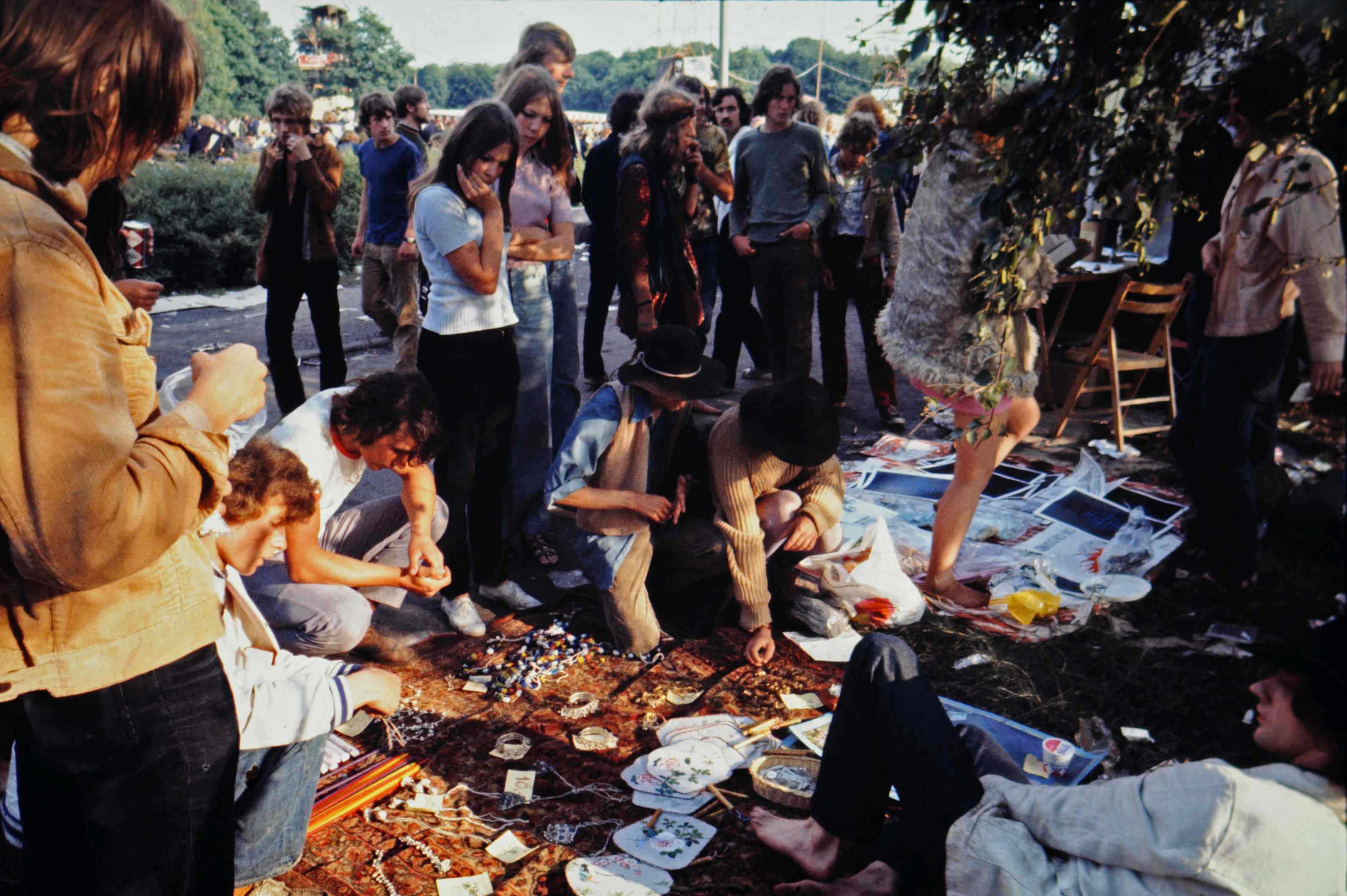 - Holland popfestival, Festival Rotterdam, Kralingse bos, bezoekers, publiek, kleed, sieraden, waaier, verkoop