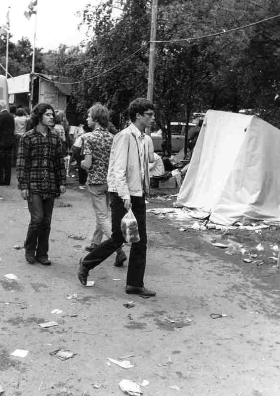 - Holland popfestival, Festival Rotterdam, Kralingse bos, bezoekers, man, bril, zak, zakje, broodjes, rommel, afval