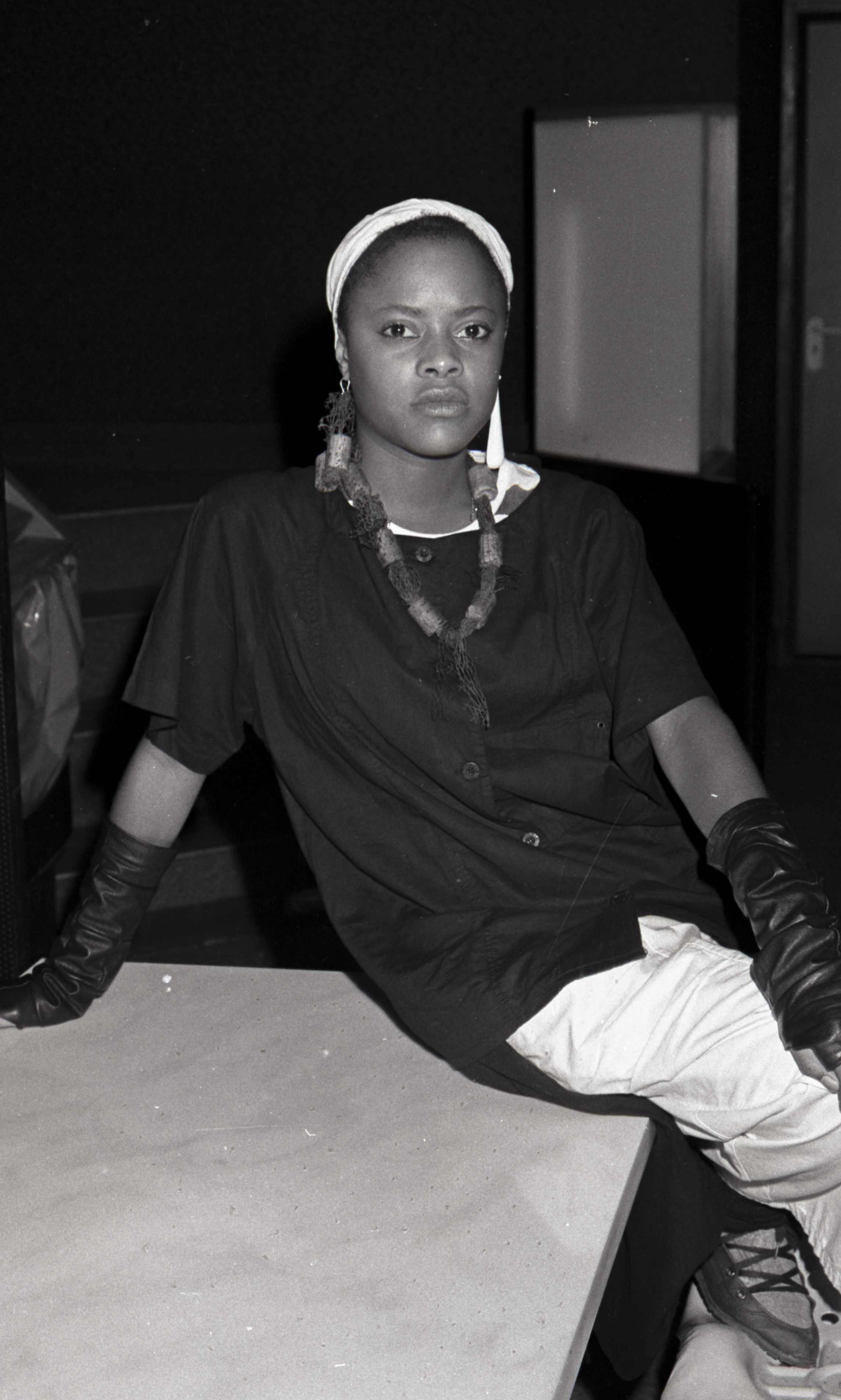 Meisje met oversized kleding met Afrikaanse en Arabische invloeden. - Plaats