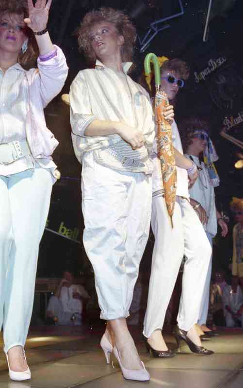 Oversized broeken met opgerolde pijpen , pumps en veel hairgel. - Plaats
