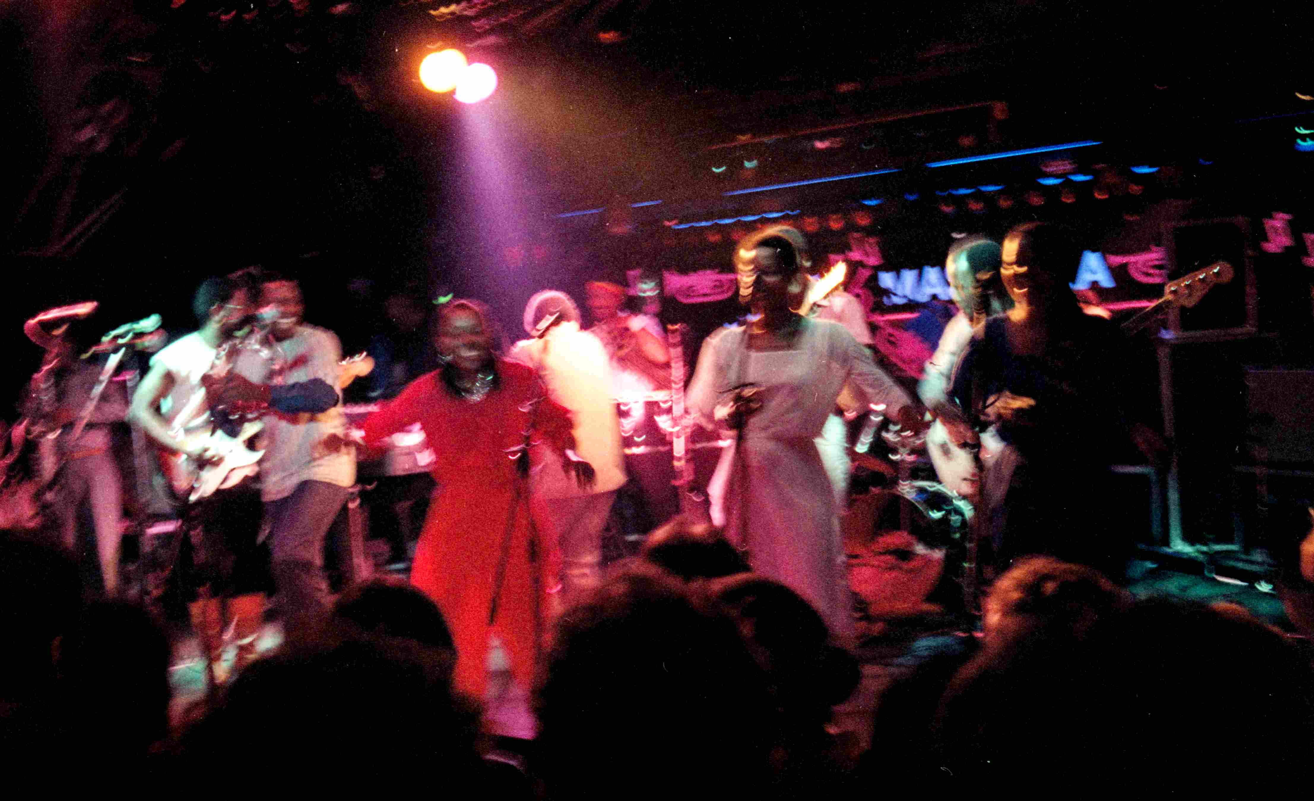 - Zangeressen bij het optreden van de Zuid-Afrikaanse trompettist en zanger Hugh Masekela in de Rotterdamse discotheek BlueTiek-in, 26 juli 1984