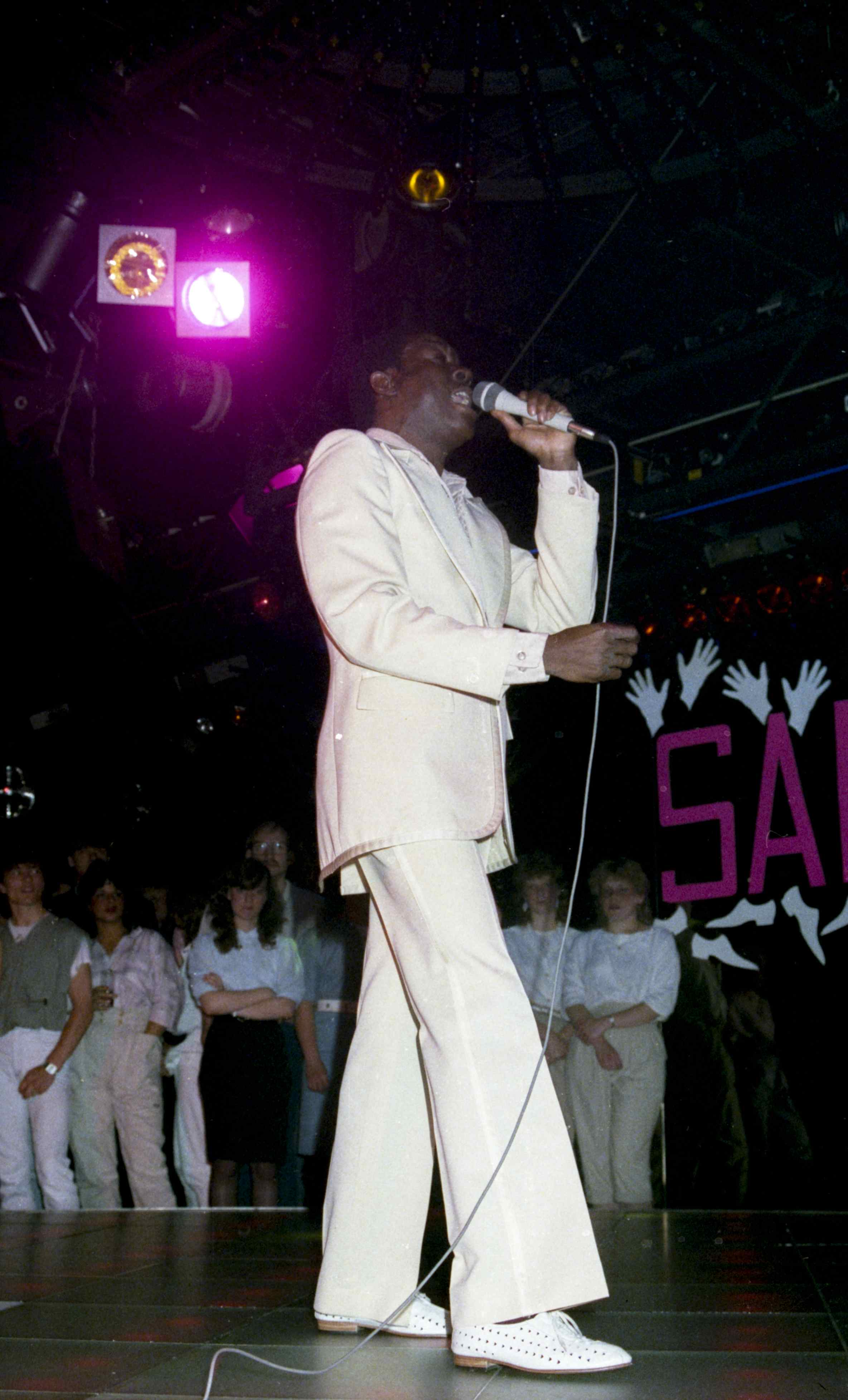 - Het Amerikaanse soulduo Sam & Dave treedt op in smetteloos witte pakken in de Rotterdamse discotheek BlueTiek-in, 7 juni 1984.