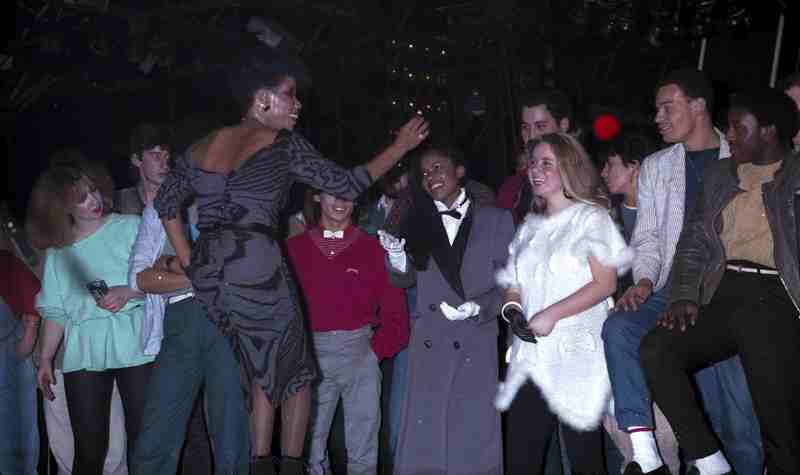 - Publiek reageert vrolijk en enthousiast op de Amerikaanse zangeres Sharon Redd in de Rotterdamse discotheek BlueTiek-in optreedt,18 januari 1984