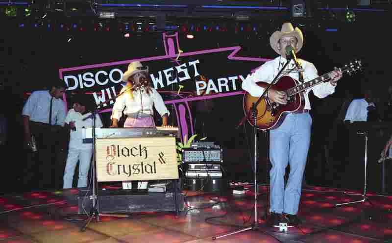 Optreden van het country-duo Black & Crystal tijdens de Cowboys and Indians Wild West Disco Party in de Rotterdamse discotheek BlueTiek-in, 12 augustus 1984.
