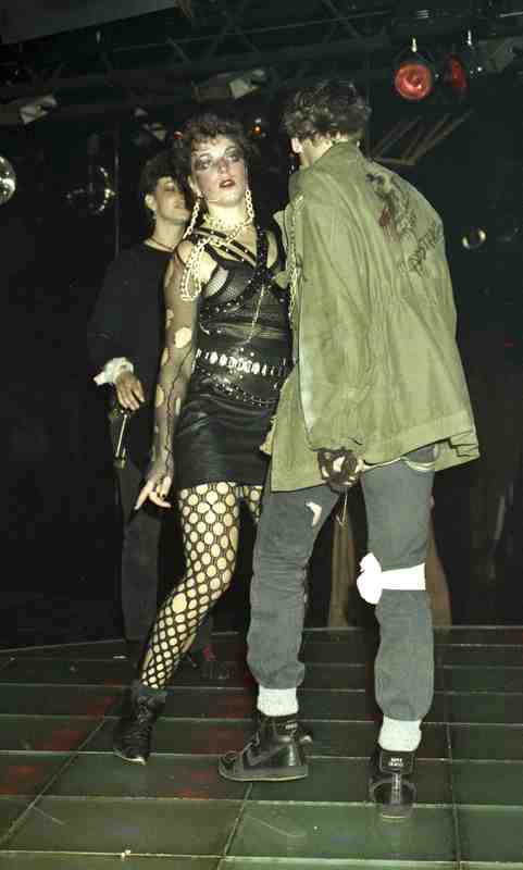 Dame in trashy punk met netkousen.