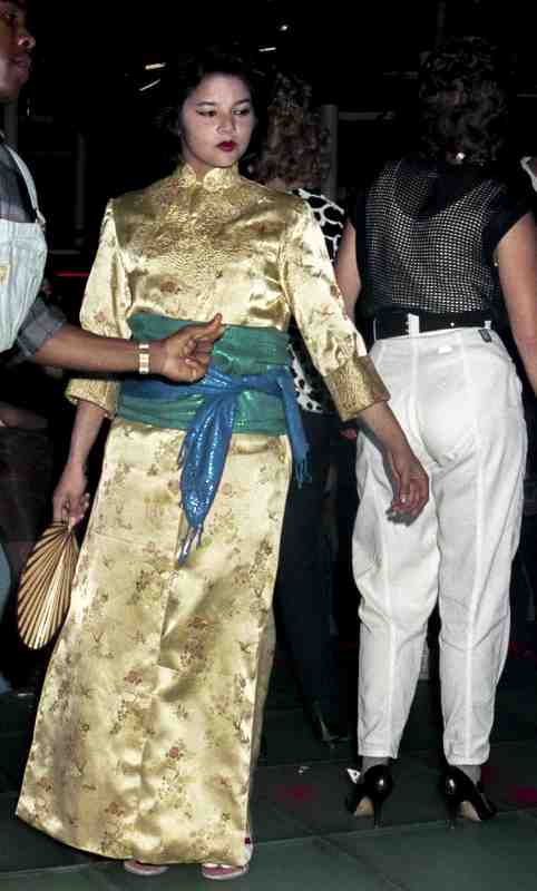 Chinese jurk met Japanse haartooi en waaier.