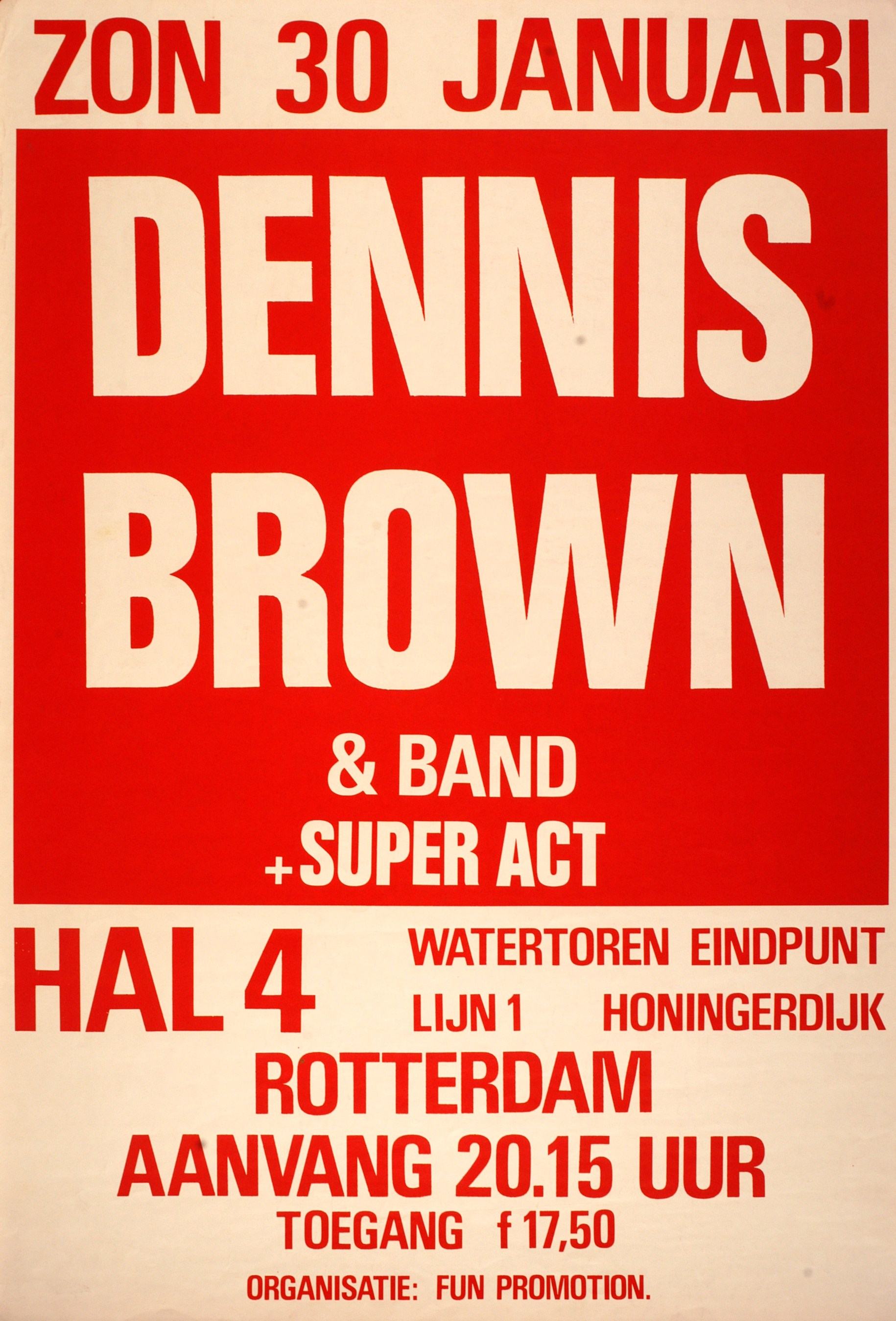 - Voor dit concert was Hal 4 verhuurd aan een Rotterdamse organisatie die te weinig kaarten had verkocht. Dennis Brown kwam, nam het voorschot in ontvangst en vertrok. Boze bezoekers werden door Hal 4 gecompenseerd.