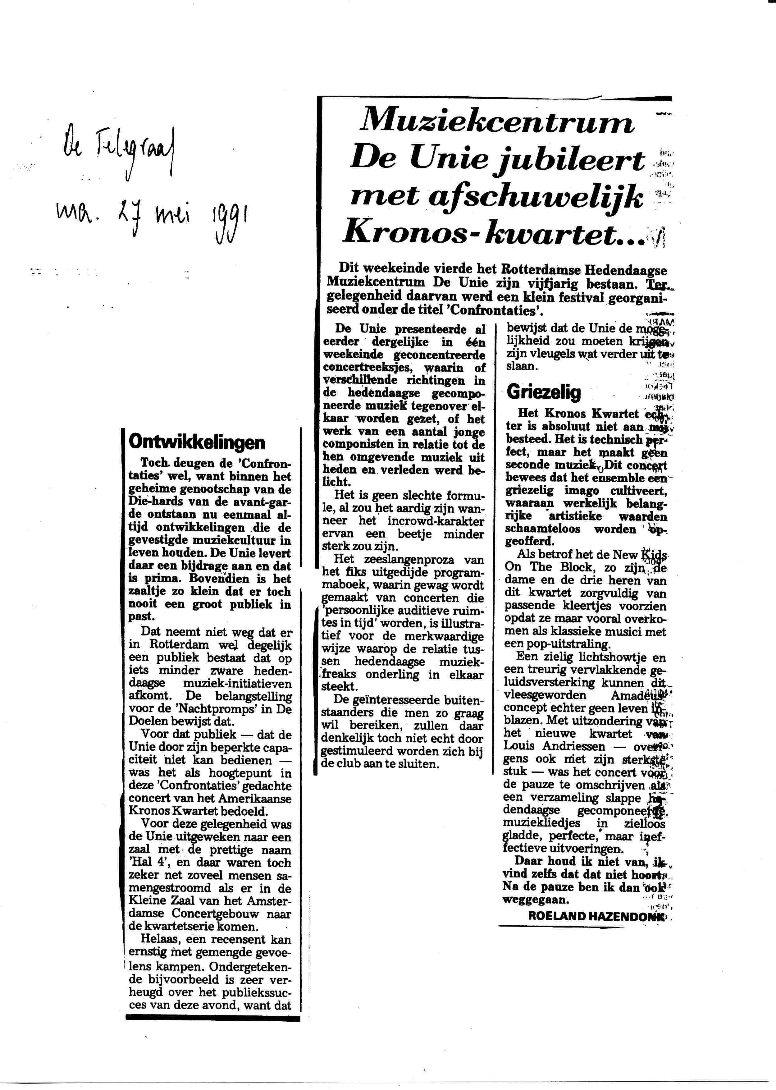 - 1991 05 27 Kronos Quartet artikel telegraaf.jpg