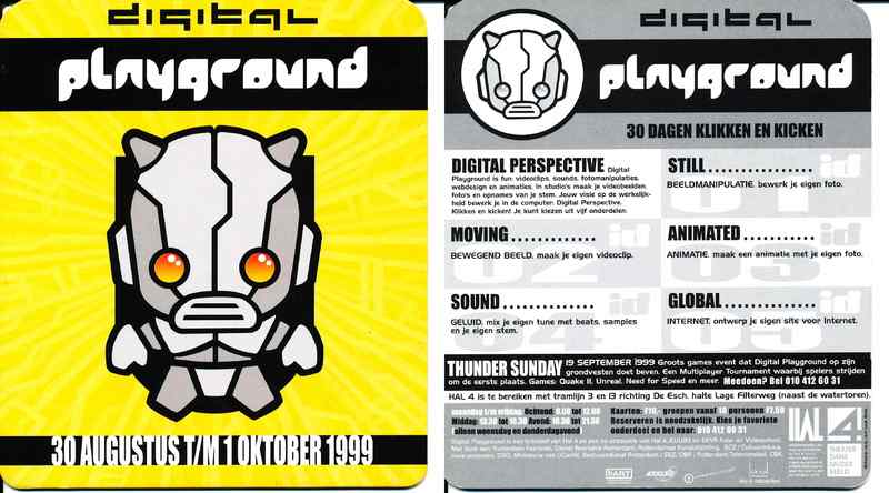 - De tweede editie Van Digital Playground in Hal 4 in 1999 had als motto '30 Dagen Klikken en Kicken'.