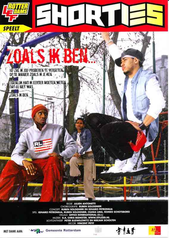 - Poster van Shorties uit 2003 met Ignaro Petronilia, Ruben Solognier, Cilesia Lima en Romeo Schotsborg