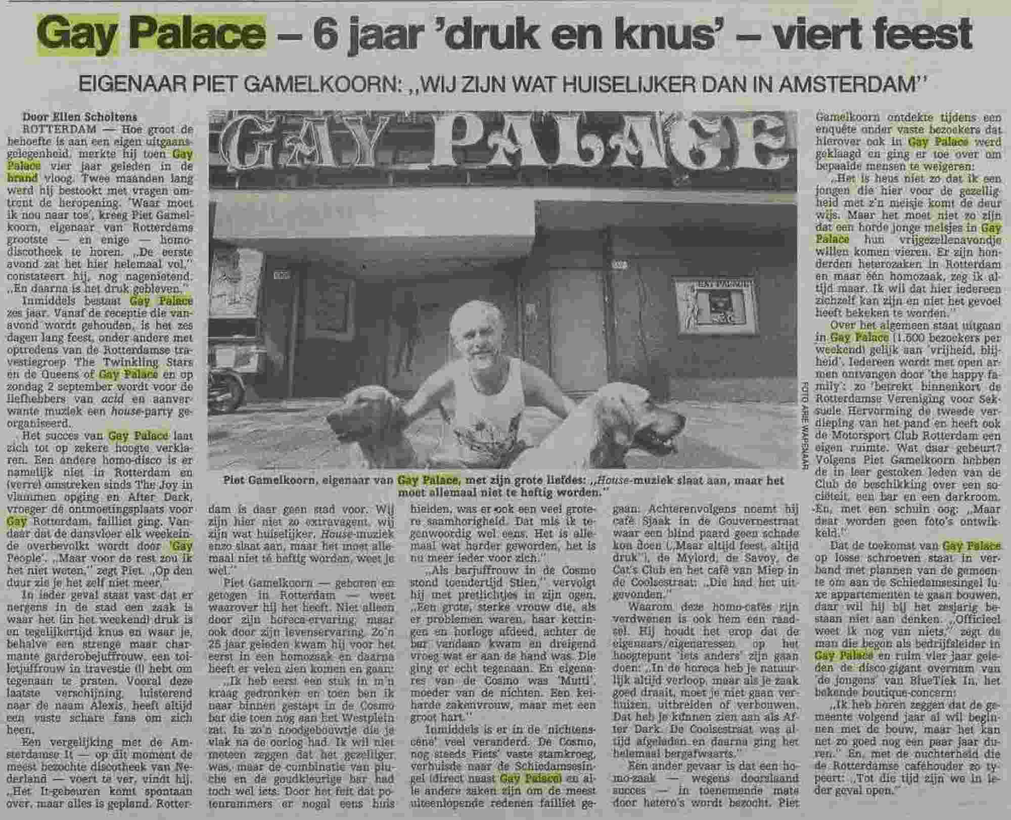 Gay Palace Het Vrije Volk 29-8-1990