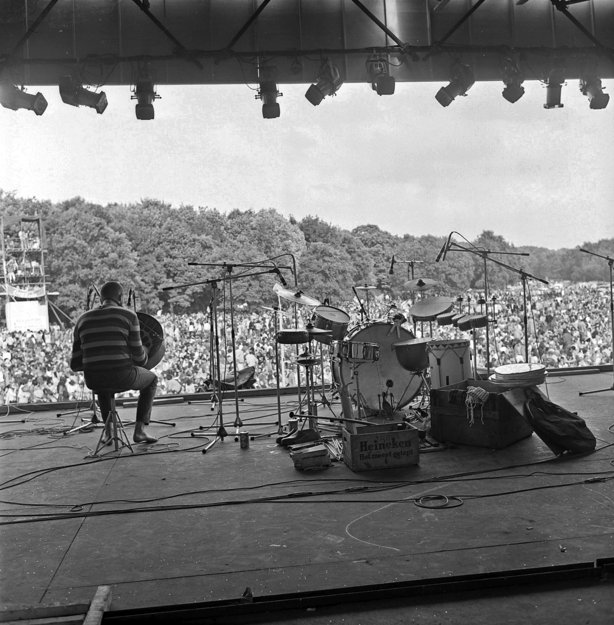 - Instrumenten staan klaar op het podium van het Holland Pop Festival